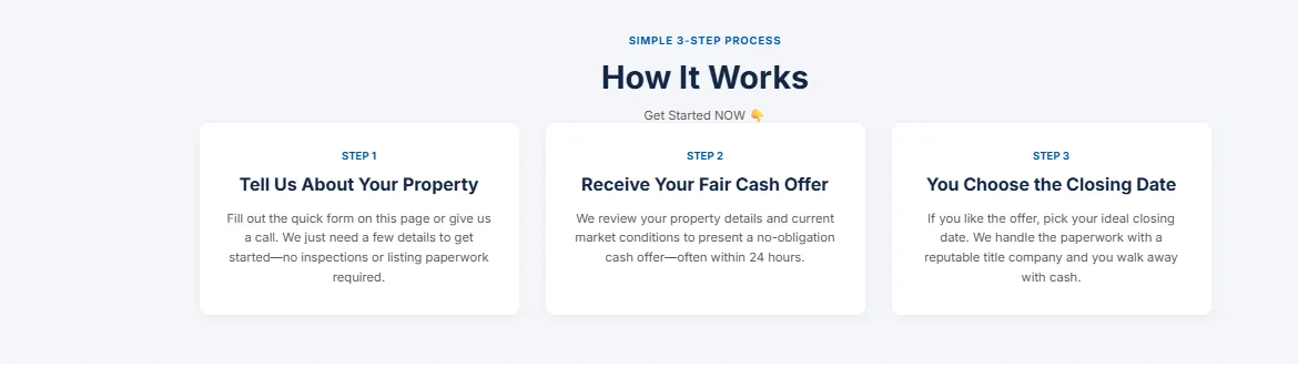 We’re not realtors. In most cases, we buy directly. In others, we may work with a partner or use alternative methods to help get your property sold — with no upfront costs, no agent commissions, and a process that fits your situation.